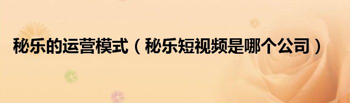 大家好,跳跳为你解答以上问题。秘乐的运营模式,秘乐短视频是哪个公司这个问题很多人还不知道,现在让我们一起来看看吧!