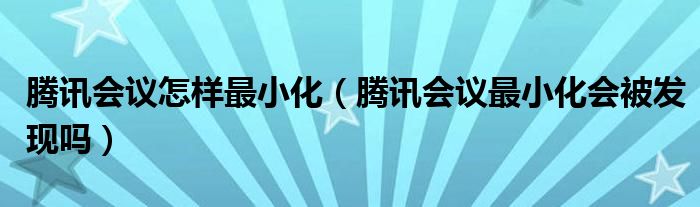 大家好,跳跳为你解答以上问题。腾讯会议怎样最小化,腾讯会议最小化会被发现吗这个问题很多人还不知道,现在让我们一起来看看吧!