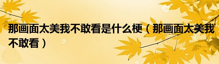 关于那画面太美我不敢看是什么梗,那画面太美我不敢看这个很多人还不知道,今天菲菲来为大家解答以上的问题,现在让我们一起来看看吧!