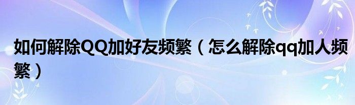 大家好,小晋来为大家解答以下问题,关于如何解除QQ加好友频繁,怎么解除qq加人频繁很多人还不知道,今天让我们一起来看看吧!