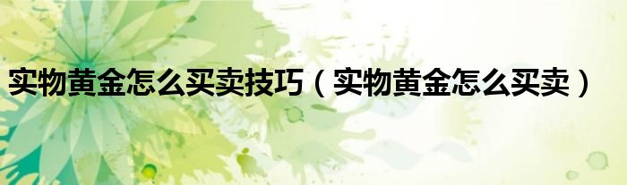 关于实物黄金怎么买卖技巧,实物黄金怎么买卖这个很多人还不知道,今天菲菲来为大家解答以上的问题,现在让我们一起来看看吧!