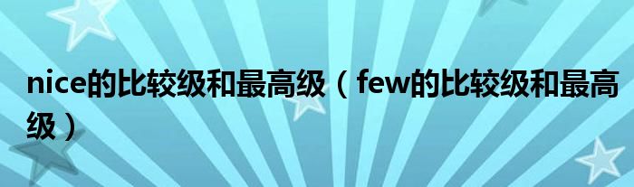 关于nice的比较级和最高级,few的比较级和最高级这个很多人还不知道,今天菲菲来为大家解答以上的问题,现在让我们一起来看看吧!