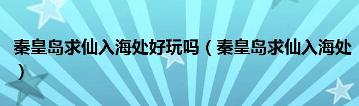 关于秦皇岛求仙入海处好玩吗,秦皇岛求仙入海处这个很多人还不知道,今天菲菲来为大家解答以上的问题,现在让我们一起来看看吧!