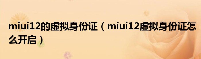 大家好,慧慧来为大家解答以上问题,miui12的虚拟身份证,miui12虚拟身份证怎么开启很多人还不知道,现在让我们一起来看看吧!