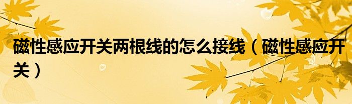 大家好,慧慧来为大家解答以上问题,磁性感应开关两根线的怎么接线,磁性感应开关很多人还不知道,现在让我们一起来看看吧!