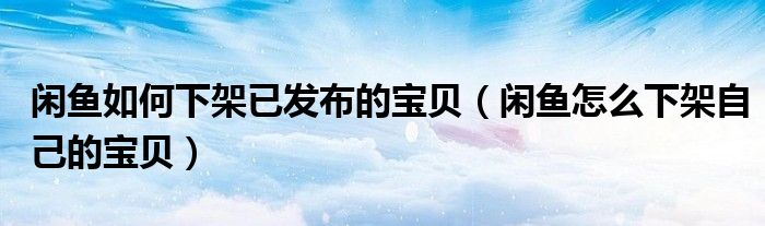大家好,跳跳为你解答以上问题。闲鱼如何下架已发布的宝贝,闲鱼怎么下架自己的宝贝这个问题很多人还不知道,现在让我们一起来看看吧!