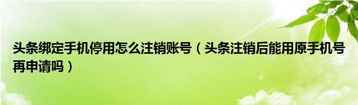 大家好,跳跳为你解答以上问题。头条绑定手机停用怎么注销账号,头条注销后能用原手机号再申请吗这个问题很多人还不知道,现在让我们一起来看看吧!