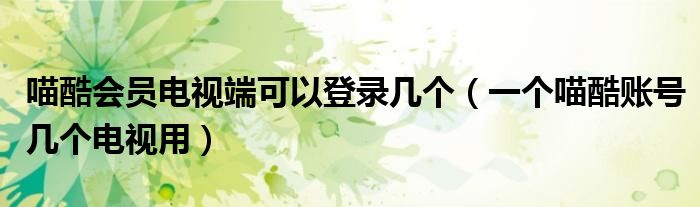 大家好,跳跳为你解答以上问题。喵酷会员电视端可以登录几个,一个喵酷账号几个电视用这个问题很多人还不知道,现在让我们一起来看看吧!