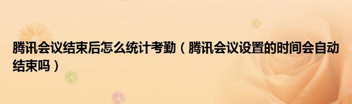大家好,跳跳为你解答以上问题。腾讯会议结束后怎么统计考勤,腾讯会议设置的时间会自动结束吗这个问题很多人还不知道,现在让我们一起来看看吧!
