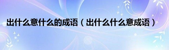 大家好,小晋来为大家解答以下问题,关于出什么意什么的成语,出什么什么意成语很多人还不知道,今天让我们一起来看看吧!