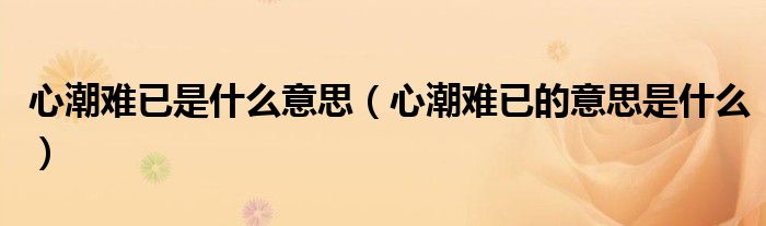 大家好,小晋来为大家解答以下问题,关于心潮难已是什么意思,心潮难已的意思是什么很多人还不知道,今天让我们一起来看看吧!