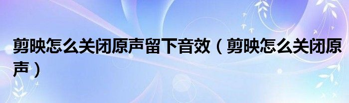 大家好,跳跳为你解答以上问题。剪映怎么关闭原声留下音效,剪映怎么关闭原声这个问题很多人还不知道,现在让我们一起来看看吧!