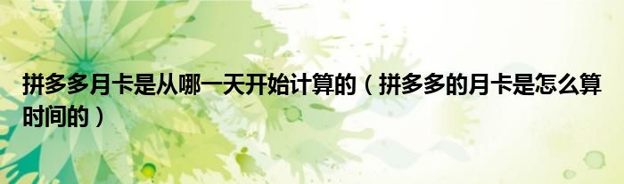 大家好,跳跳为你解答以上问题。拼多多月卡是从哪一天开始计算的,拼多多的月卡是怎么算时间的这个问题很多人还不知道,现在让我们一起来看看吧!