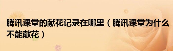 大家好,跳跳为你解答以上问题。腾讯课堂的献花记录在哪里,腾讯课堂为什么不能献花这个问题很多人还不知道,现在让我们一起来看看吧!
