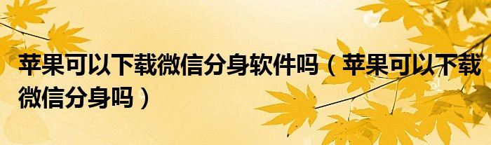 大家好,熊熊为你解答以上问题。苹果可以下载微信分身软件吗,苹果可以下载微信分身吗这个很多人还不知道,现在让我们一起来看看吧!