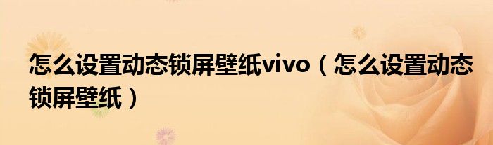 大家好,小晋来为大家解答以下问题,关于怎么设置动态锁屏壁纸vivo,怎么设置动态锁屏壁纸很多人还不知道,今天让我们一起来看看吧!