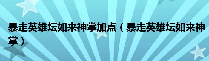 大家好,小晋来为大家解答以下问题,关于暴走英雄坛如来神掌加点,暴走英雄坛如来神掌很多人还不知道,今天让我们一起来看看吧!