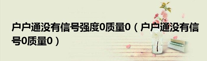 大家好,小晋来为大家解答以下问题,关于户户通没有信号强度0质量0,户户通没有信号0质量0很多人还不知道,今天让我们一起来看看吧!
