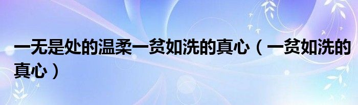 大家好,小晋来为大家解答以下问题,关于一无是处的温柔一贫如洗的真心,一贫如洗的真心很多人还不知道,今天让我们一起来看看吧!