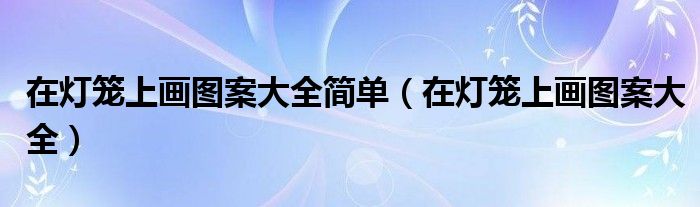 大家好,小晋来为大家解答以下问题,关于在灯笼上画图案大全简单,在灯笼上画图案大全很多人还不知道,今天让我们一起来看看吧!