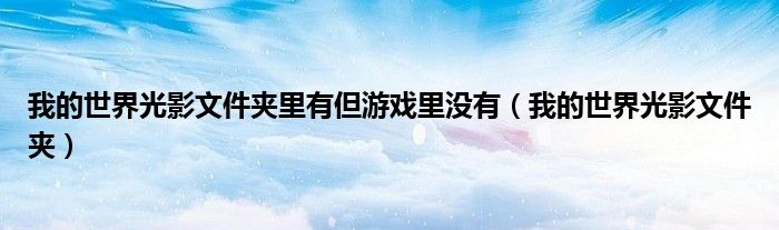 关于我的世界光影文件夹里有但游戏里没有,我的世界光影文件夹这个很多人还不知道,今天菲菲来为大家解答以上的问题,现在让我们一起来看看吧!