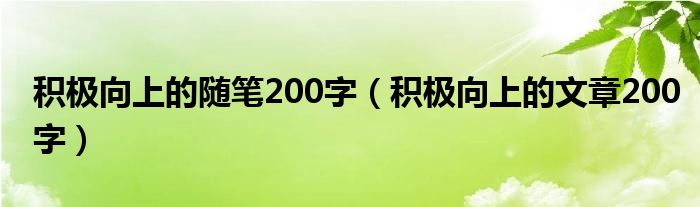 关于积极向上的随笔200字,积极向上的文章200字这个很多人还不知道,今天菲菲来为大家解答以上的问题,现在让我们一起来看看吧!