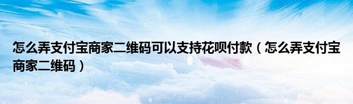 怎么弄支付宝商家二维码可以支持花呗付款(怎么弄支付宝商家二维码)