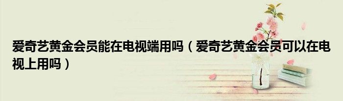 大家好,小晋来为大家解答以下问题,关于爱奇艺黄金会员能在电视端用吗,爱奇艺黄金会员可以在电视上用吗很多人还不知道,今天让我们一起来看看吧!
