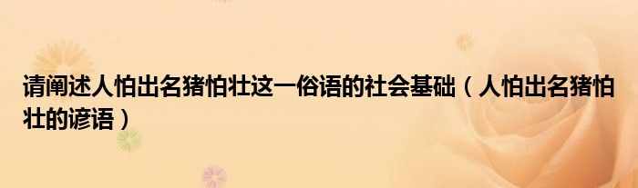请阐述人怕出名猪怕壮这一俗语的社会基础(人怕出名猪怕壮的谚语)