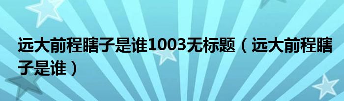 大家好,小晋来为大家解答以下问题,关于远大前程瞎子是谁1003无标题,远大前程瞎子是谁很多人还不知道,今天让我们一起来看看吧!