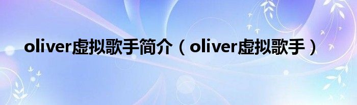 关于oliver虚拟歌手简介,oliver虚拟歌手这个很多人还不知道,今天菲菲来为大家解答以上的问题,现在让我们一起来看看吧!