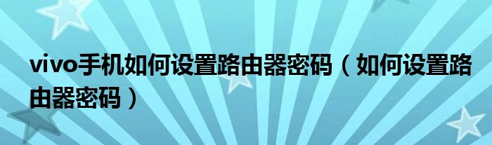 大家好,来宝来为大家解答以下问题,vivo手机如何设置路由器密码,如何设置路由器密码很多人还不知道,今天让我们一起来看看吧!