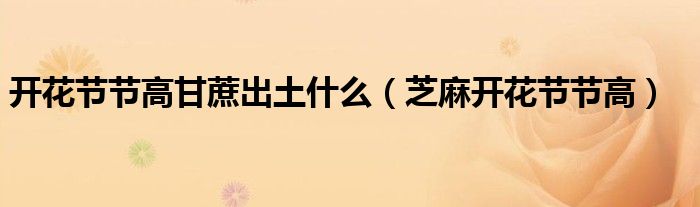 关于开花节节高甘蔗出土什么,芝麻开花节节高这个很多人还不知道,今天菲菲来为大家解答以上的问题,现在让我们一起来看看吧!