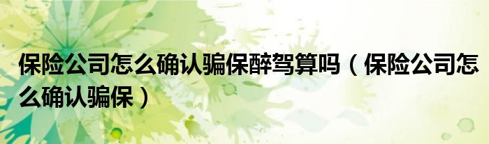 大家好,小晋来为大家解答以下问题,关于保险公司怎么确认骗保醉驾算吗,保险公司怎么确认骗保很多人还不知道,今天让我们一起来看看吧!