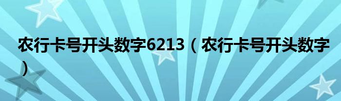 大家好,小晋来为大家解答以下问题,关于农行卡号开头数字6213,农行卡号开头数字很多人还不知道,今天让我们一起来看看吧!