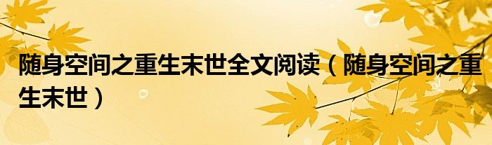关于随身空间之重生末世全文阅读,随身空间之重生末世这个很多人还不知道,今天菲菲来为大家解答以上的问题,现在让我们一起来看看吧!