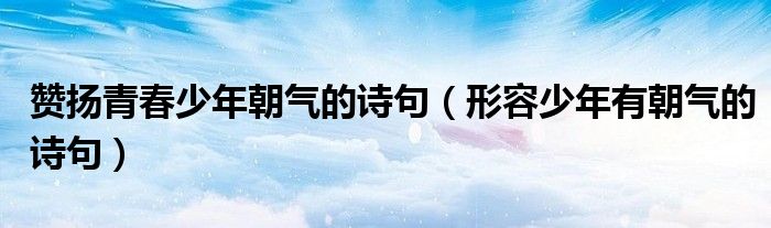 大家好,小晋来为大家解答以下问题,关于赞扬青春少年朝气的诗句,形容少年有朝气的诗句很多人还不知道,今天让我们一起来看看吧!