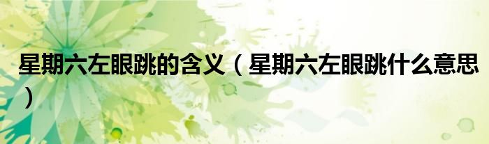 大家好,小晋来为大家解答以下问题,关于星期六左眼跳的含义,星期六左眼跳什么意思很多人还不知道,今天让我们一起来看看吧!
