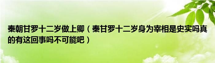 关于秦朝甘罗十二岁做上卿,秦甘罗十二岁身为宰相是史实吗真的有这回事吗不可能吧这个很多人还不知道,今天菲菲来为大家解答以上的问题,现在让我们一起来看看吧!