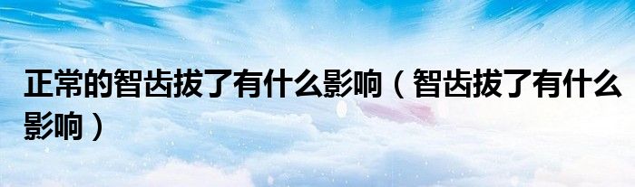 关于正常的智齿拔了有什么影响,智齿拔了有什么影响这个很多人还不知道,今天菲菲来为大家解答以上的问题,现在让我们一起来看看吧!