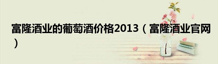 关于富隆酒业的葡萄酒价格2013,富隆酒业官网这个很多人还不知道,今天菲菲来为大家解答以上的问题,现在让我们一起来看看吧!
