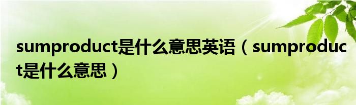 关于sumproduct是什么意思英语,sumproduct是什么意思这个很多人还不知道,今天菲菲来为大家解答以上的问题,现在让我们一起来看看吧!