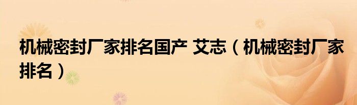 关于机械密封厂家排名国产 艾志,机械密封厂家排名这个很多人还不知道,今天菲菲来为大家解答以上的问题,现在让我们一起来看看吧!