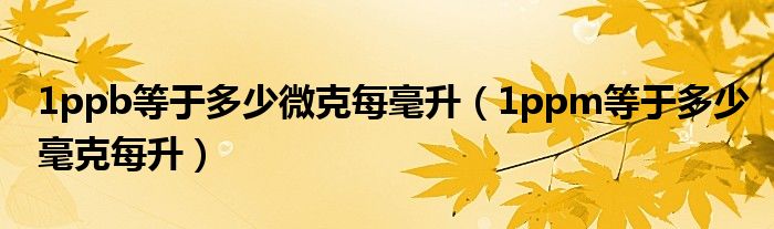 关于1ppb等于多少微克每毫升,1ppm等于多少毫克每升这个很多人还不知道,今天菲菲来为大家解答以上的问题,现在让我们一起来看看吧!