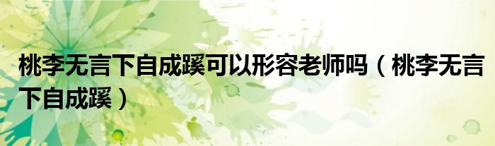 关于桃李无言下自成蹊可以形容老师吗,桃李无言下自成蹊这个很多人还不知道,今天菲菲来为大家解答以上的问题,现在让我们一起来看看吧!