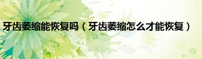 大家好,小晋来为大家解答以下问题,关于牙齿萎缩能恢复吗,牙齿萎缩怎么才能恢复很多人还不知道,今天让我们一起来看看吧!