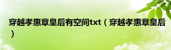 关于穿越孝惠章皇后有空间txt,穿越孝惠章皇后这个很多人还不知道,今天菲菲来为大家解答以上的问题,现在让我们一起来看看吧!