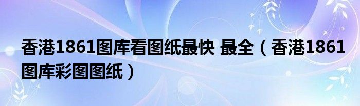 关于香港1861图库看图纸最快 最全,香港1861图库彩图图纸这个很多人还不知道,今天菲菲来为大家解答以上的问题,现在让我们一起来看看吧!