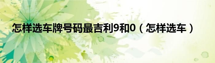 关于怎样选车牌号码最吉利9和0,怎样选车这个很多人还不知道,今天菲菲来为大家解答以上的问题,现在让我们一起来看看吧!