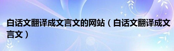 关于白话文翻译成文言文的网站,白话文翻译成文言文这个很多人还不知道,今天菲菲来为大家解答以上的问题,现在让我们一起来看看吧!